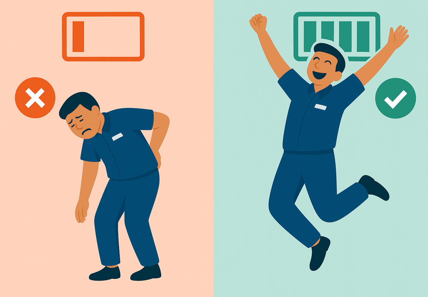 One in four shift workers report poor well-being. They feel their bodies are broken. Exercise can help you feeling better. By telling us how you really feel, FitShifter will create the most appropriate routine. If you're feeling low, it's time to recover. If you're feeling energetic, it's time to push!